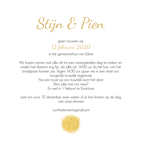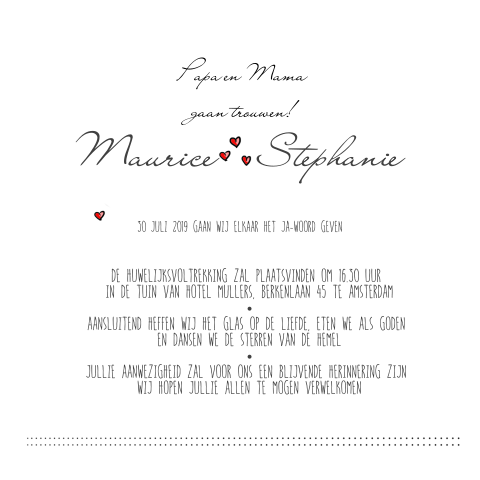 Feestelijke Huwelijkskaart Met Goudkleurige Hartjes from www.prettyorange.nl Bekijk meer ideeën over huwelijkskaart, trouwkaart, geboortekaarten. Je ziet het al helemaal voor je. Best huwelijkskaart hashtags popular on instagram, twitter, facebook, tumblr